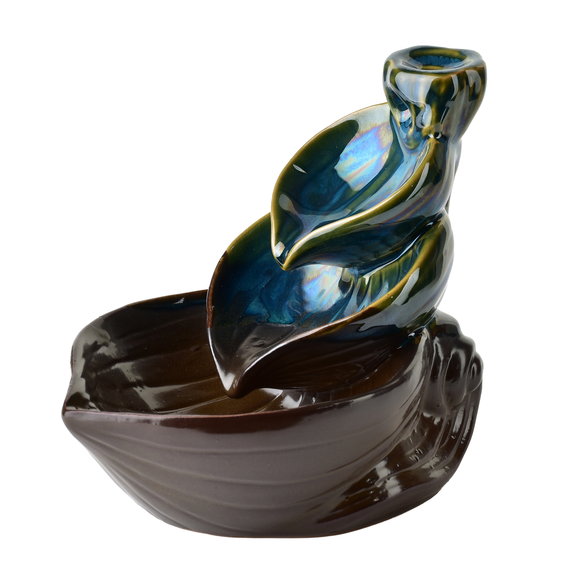 BACKFLOW Kominek ceramiczny. Kominek ceramiczny typu backflow to elegancki i relaksujący element dekoracyjny, który łączy funkcję aromaterapii z unikalnym efektem wizualnym. Dzięki specjalnej konstrukcji dym z kadzidełek spływaw dół niczym mgiełka wodospadu, tworząc hipnotyzujący widok... Wymiary i budowa Wysokość: 11,5cm Szerokość i głębokość: 10 10 cm Materiał: Wysokiej jakości ceramika (często szkliwiona) Wymaga specjalnych kadzideł stożkowych typu backflow z otworem u podstawy Dym zamiast unosić się do góry, spływa kaskadowo w dół przez wyprofilowane kanały ceramiczneEfekt: Przypomina płynącą mgłę, wodospad lub dym wijący się po schodach. Relaksacja i medytacja: Doskonały do sesji jogi, masażu, wieczornego relaksu Dekoracja: Idealny element wystroju salonu, sypialni, biura, Kominek należy ustawiać na stabilnej, niepalnej powierzchniZalecane jest używanie na podkładce lub tacy, ponieważ dym może zostawiać osadProdukt przeznaczony do użytku wewnętrznego 10x10x11,5cm