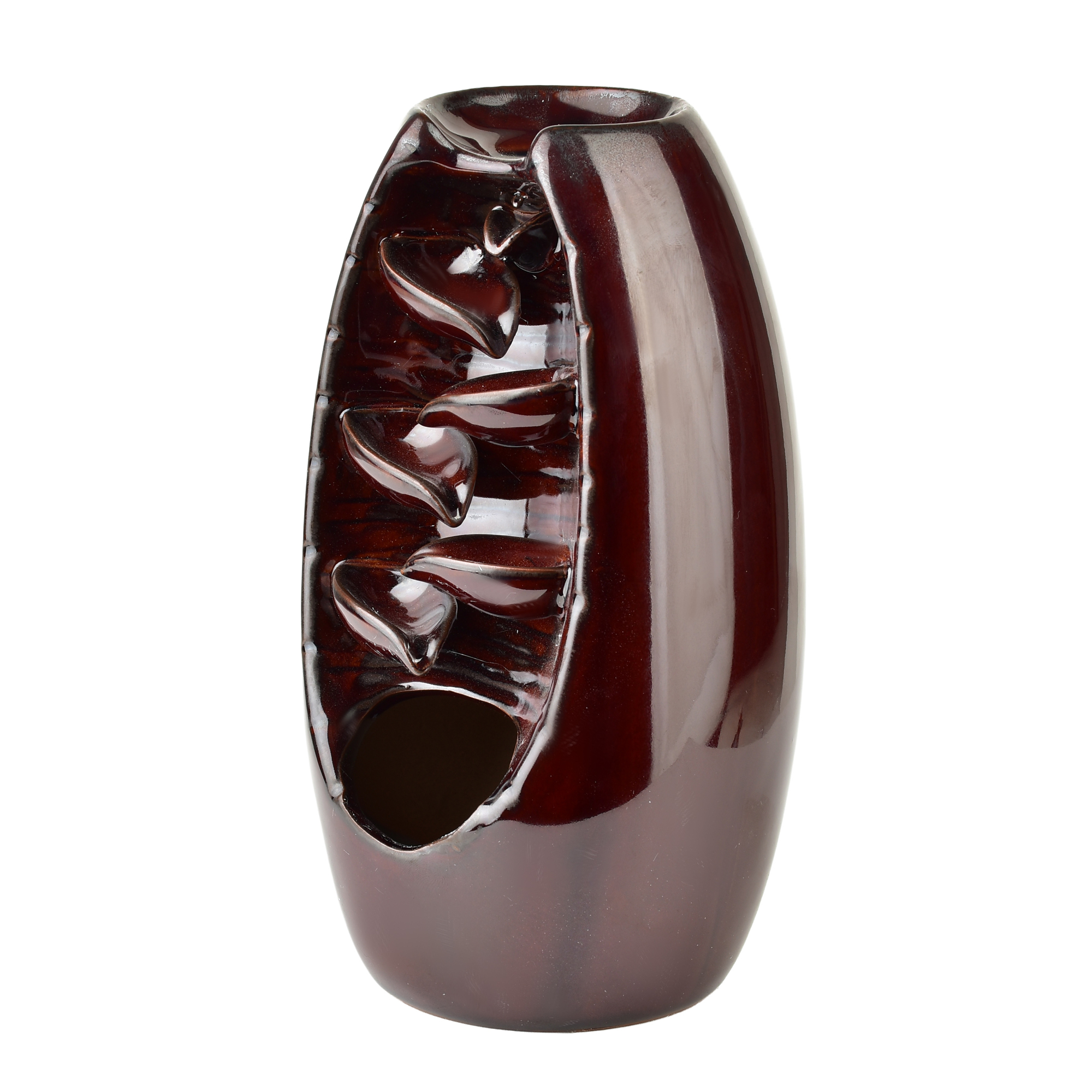 BACKFLOW Kominek ceramiczny. Kominek ceramiczny typu backflow to elegancki i relaksujący element dekoracyjny, który łączy funkcję aromaterapii z unikalnym efektem wizualnym. Dzięki specjalnej konstrukcji dym z kadzidełek spływaw dół niczym mgiełka wodospadu, tworząc hipnotyzujący widok... Wymiary i budowa Wysokość: 20 cm Szerokość i głębokość: 10 10 cm Materiał: Wysokiej jakości ceramika (często szkliwiona) Wymaga specjalnych kadzideł stożkowych typu backflow z otworem u podstawy Dym zamiast unosić się do góry, spływa kaskadowo w dół przez wyprofilowane kanały ceramiczneEfekt: Przypomina płynącą mgłę, wodospad lub dym wijący się po schodach. Relaksacja i medytacja: Doskonały do sesji jogi, masażu, wieczornego relaksu Dekoracja: Idealny element wystroju salonu, sypialni, biura, Kominek należy ustawiać na stabilnej, niepalnej powierzchniZalecane jest używanie na podkładce lub tacy, ponieważ dym może zostawiać osadProdukt przeznaczony do użytku wewnętrznego 10x10x20cm