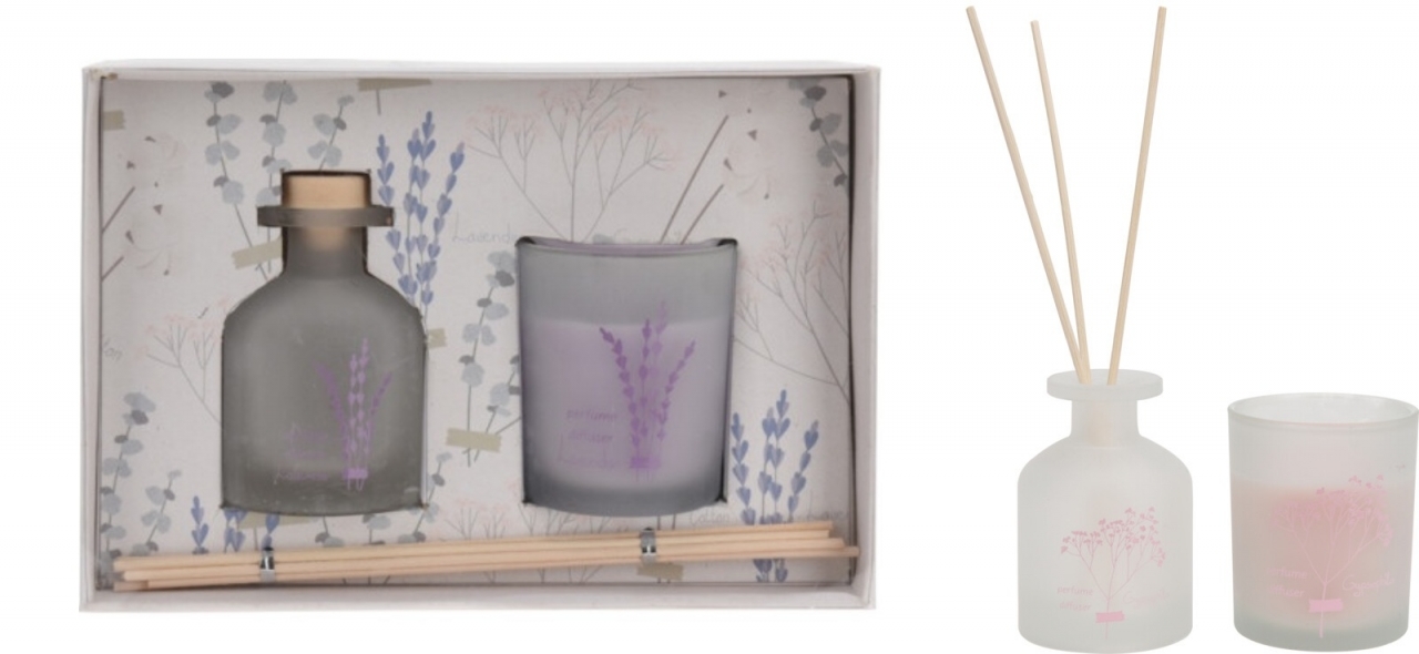 Příjemná a jemná vůně lavender. Oblíbenou vůni si můžete vychutnat v každém ročním obodobí. Bytový difuzér a svíčka ve skle naplní váš domov úžasnou atosférou a bude voňavým doplňkem interiéru. Difuzér v podobě skleněné lahvičky s uzávěrem dodá každému prostoru svěžest a harmonii, obsahuje 6 tyčinek, ze kterých se vůně uvolňuje do prostoru. Svíčka je také ve skle. Nádherný dárek a jedinečná dekorace.