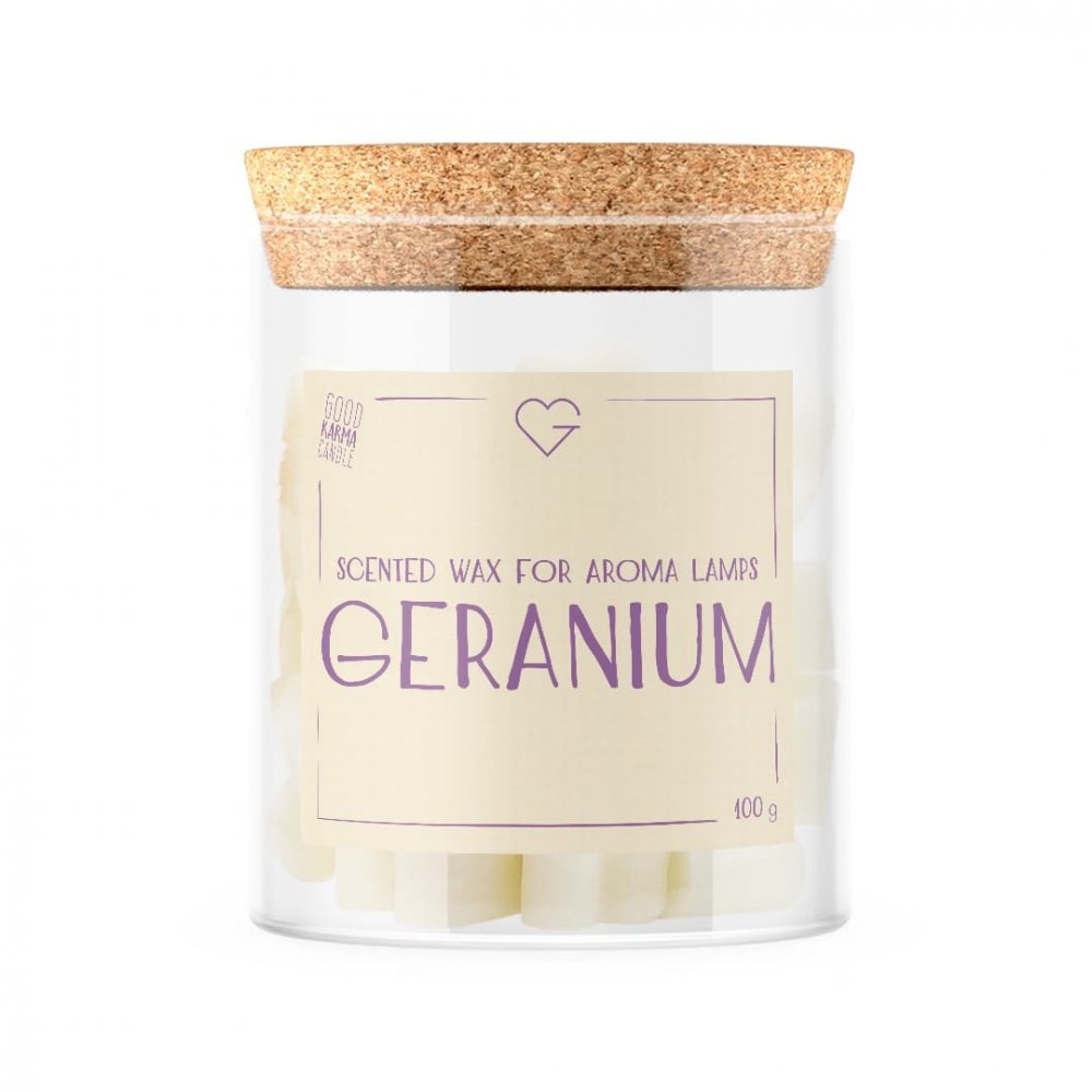 Nechte se zlákat svěží a povzbuzující lehce květinovou a jemně citrusovou vůní přírodní esence z pelargonie vonné. K životnímu prostředí šetrný 100% přírodní olivový vosk s esenciálním olejem se po rozpuštění účinně rozvoní a nepřetržitě uvolňuje svou vůni během celé doby zahřívání. Vonný vosk ve tvaru různě velkých srdíček se snadno dávkuje - jeden kousek voní až několik hodin a pro zintenzivnění vůně stačí přidat další. Díky zabalení do elegantní a praktické sklenice představuje vonný vosk vhodný dárek a poslouží i jako dekorace.