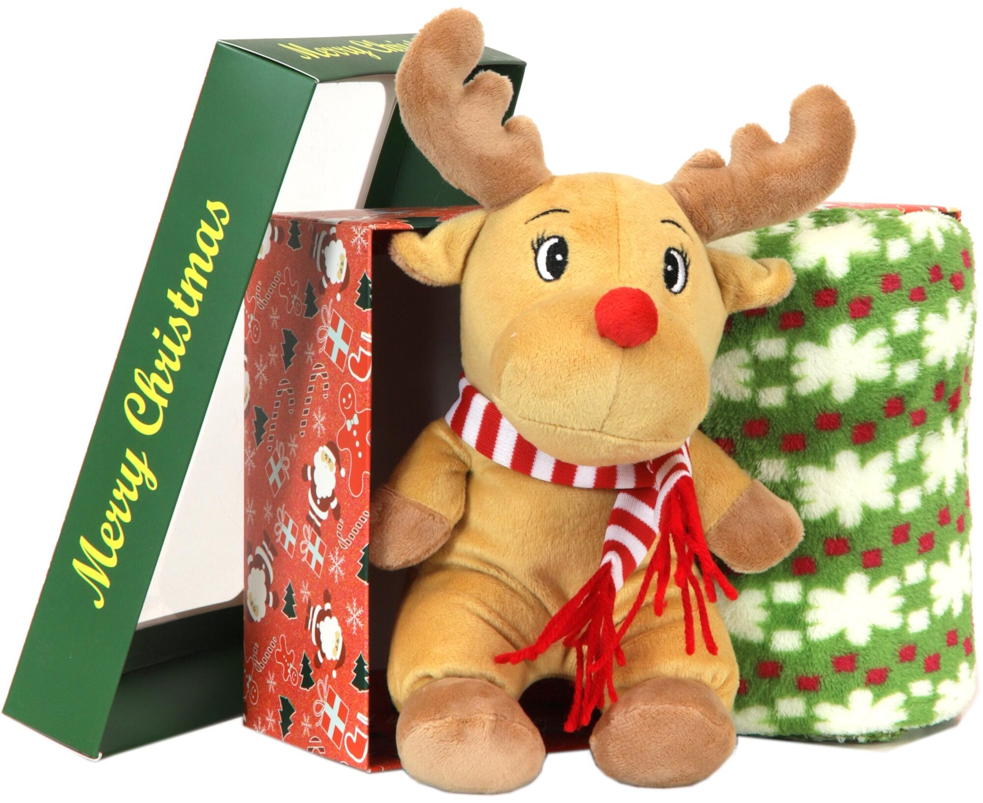 Vánoční plyšový sob s dekou v dárkové krabičce