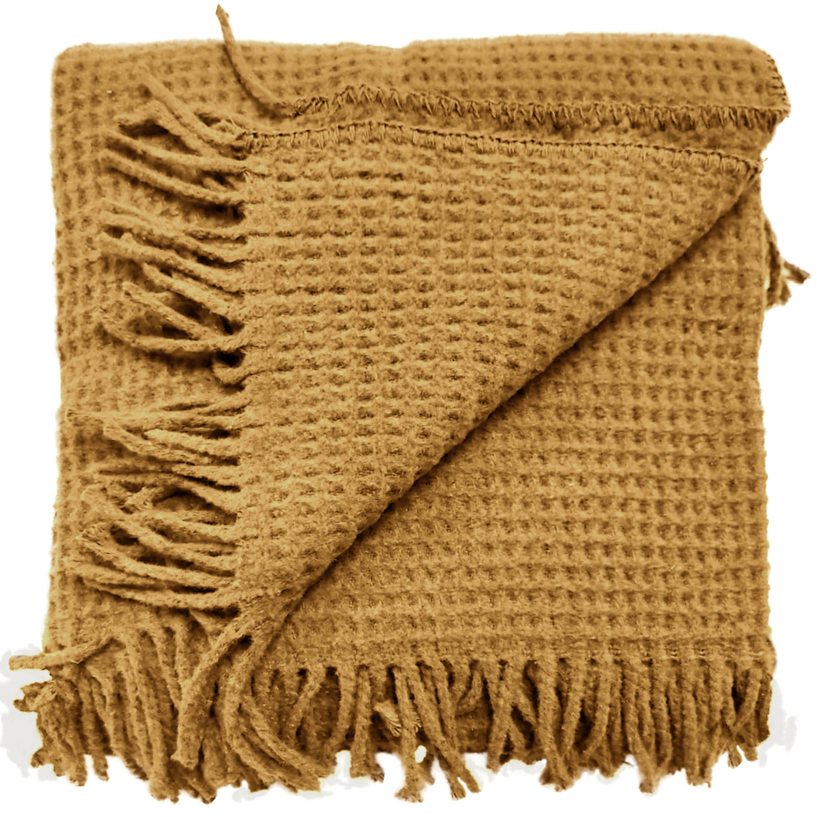 Hřejivý pléd s třásněmi Selien v karamelové je součástí kolekce Selien holandské značky Unique Living