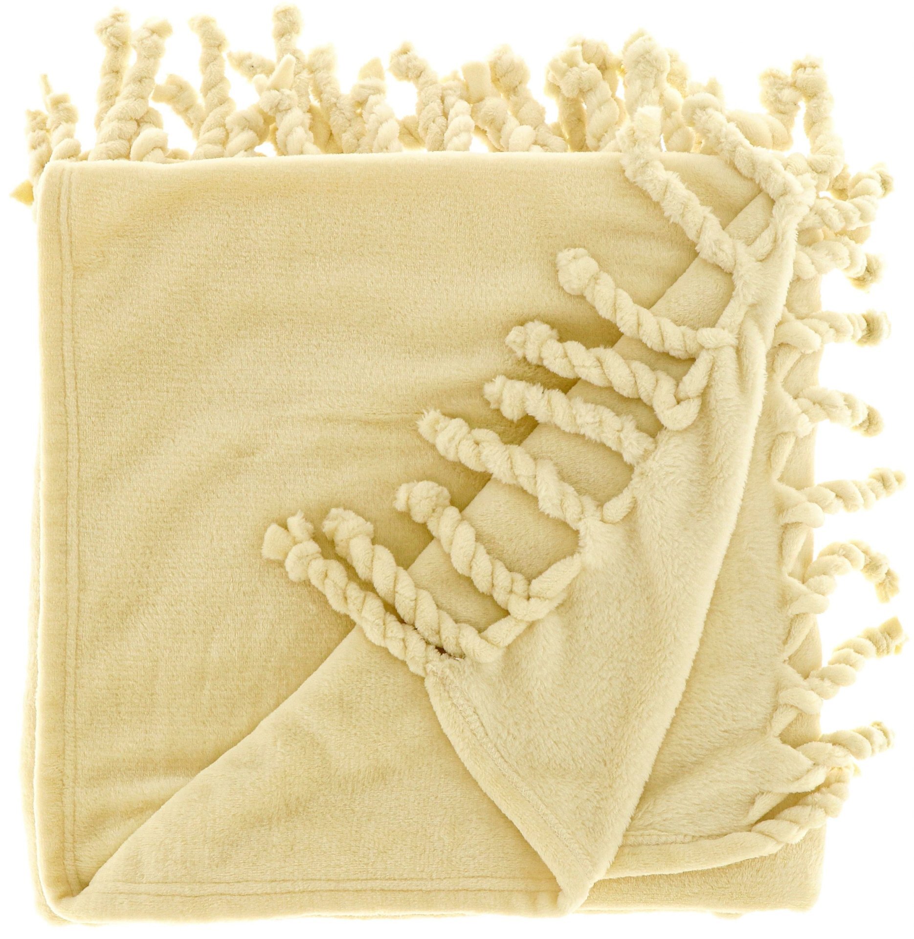 Hřejivý pléd s třásněmi Lieke světle žlutý