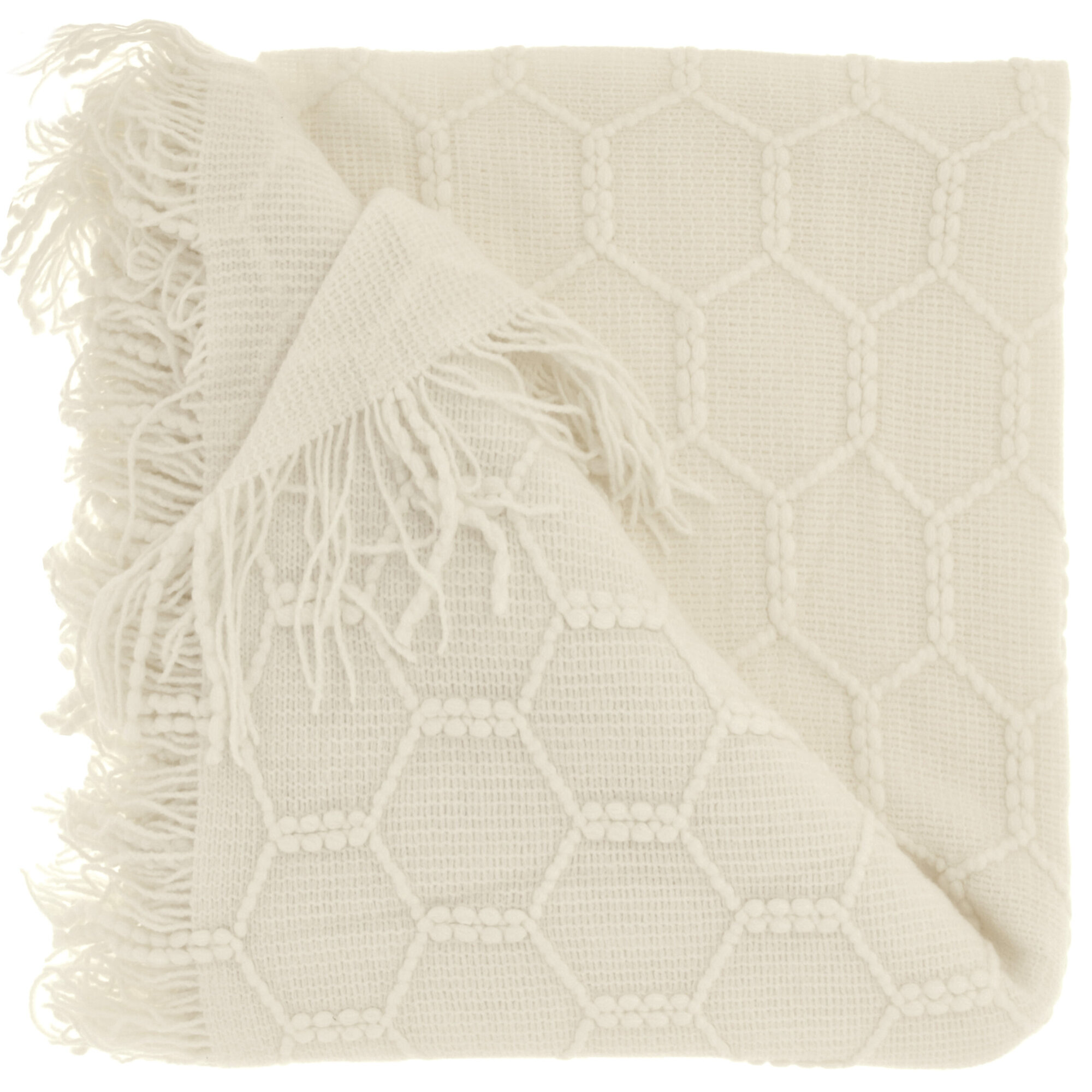 Hřejivý pléd s třásněmi Fee v holubí bílé