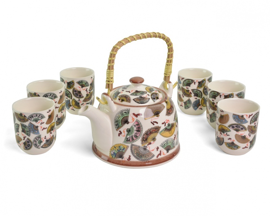 Čajová souprava z keramiky v dárkové papírové krabici.Parametry:- vnitřní sítko typu B- 1x konvička o objemu cca 0,75l, výšce 12 cm a šířce 14 cm- 6x šálek o objemu 0,15l, výšce 8 cm a šířce 6,5 cmmateriál: keramika