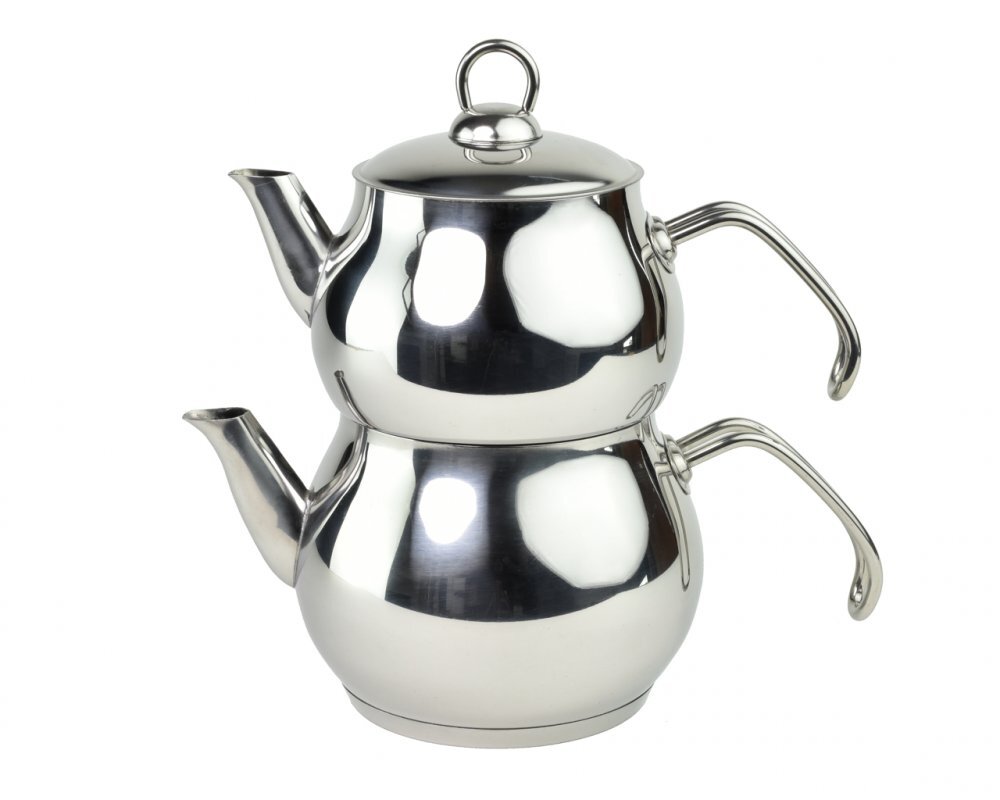 Turecká dvojkonvice caydanlik z nerezové oceli pro přípravu tradičního tureckého čaje rize. Nepostradatelná výbava každého milovníka rize.Parametry: Horní konvičkaObjem: 0,9 lVýška: 14 cmŠířka: 24 cmPrůměr: 13 cmDolní konvičkaObjem: 1,6 lVýška: 16 cmŠířka: 28 cmPrůměr: 15 cmVýška kompletu: 25 cm číst celé