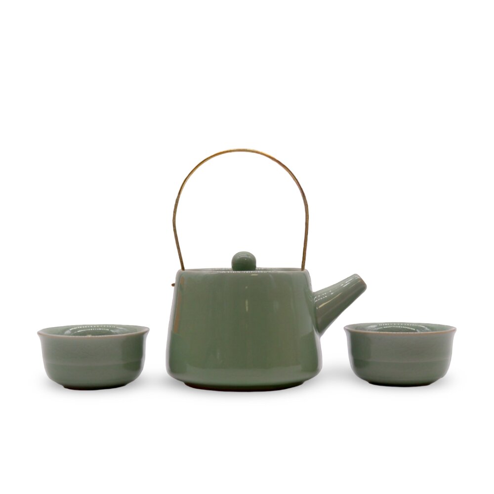 Konvička se zelenou praskanou glazurou a dvěma šálkyVychutnejte si chvíle klidu s touto elegantní keramickou konvičkou a dvěma kalíšky, které jsou jako stvořené pro intimní čajový rituál. Každý kus je glazován do jemného zeleného odstínu s efektní praskanou strukturou, která dodává soupravě jedinečný charakter. Keramická konvička je opatřena praktickým kovovým ouškem a nevyjímatelným sítkem v ústí hubice, takže čajové lístky zůstávají tam, kde mají. Ideální velikost pro čajové sezení ve dvou - ať už ráno, nebo při večerním odpočinku. Specifikace: Objem konvičky: cca 150 ml Objem šálků: cca 30 ml Rozměry konvičky: výška 6,5 cm (bez víčka) Rozměry šálků: průměr 6 cm, výška 3 cm Materiál: keramika se zelenou praskanou glazurou, kovové ouško Sítko: nevyjímatelné, umístěné v ústí hubice Tato souprava spojuje estetiku, funkčnost a krásné zpracování - ideální dárek nebo stylový doplněk pro váš čajový koutek.