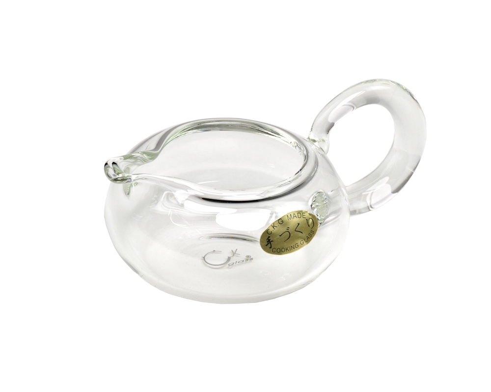 Džbánek s uchem vyrobený ručně z varného skla o objemu cca 0,15l. Rozměry 4 x 7 cm. číst celé