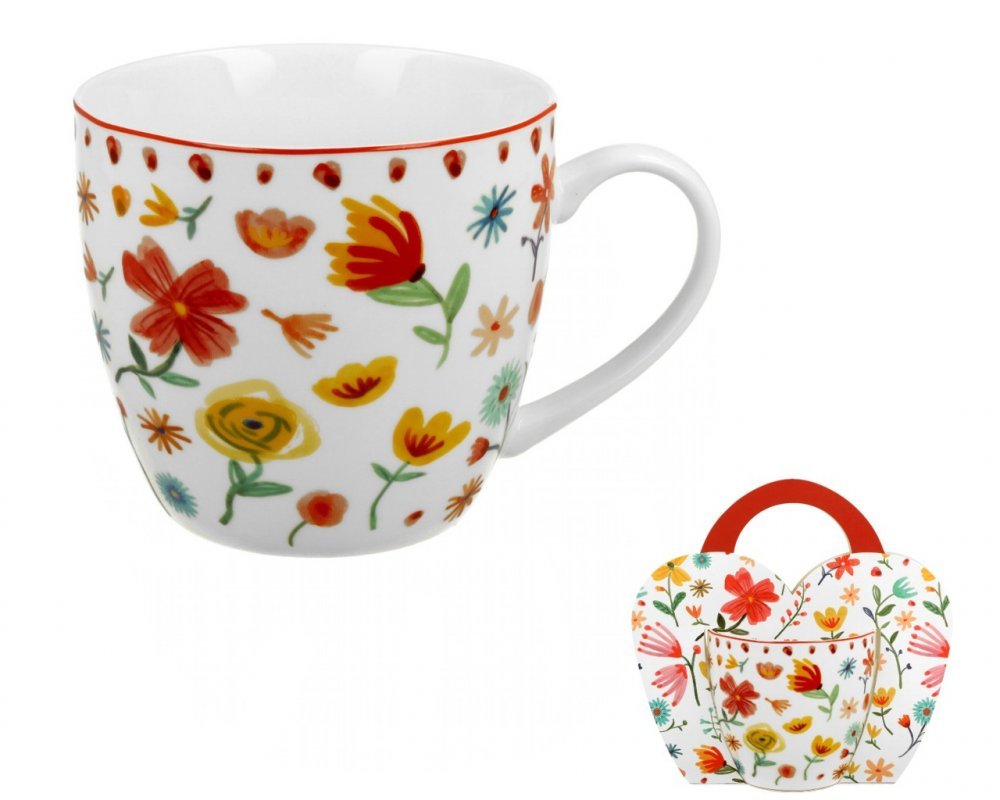 Edici zdobí motiv květů vyvedených pastelem. Vše zabaleno v originálním papírovém přebalu s uchem. Výborný tip na skvělý dárek k narozeninám pro ženu či muže, stejně jako na dárek pro šéfa i učitele, vhodné i jako poděkování.Parametry:Výška: 9 cmHorní průměr: 10 cmDolní průměr: 6,5 cmŠířka s uchem: 14 cmObjem: 400 mlMateriál porcelánVhodné do myčky ANOVhodné do mikrovlné trouby ANO
