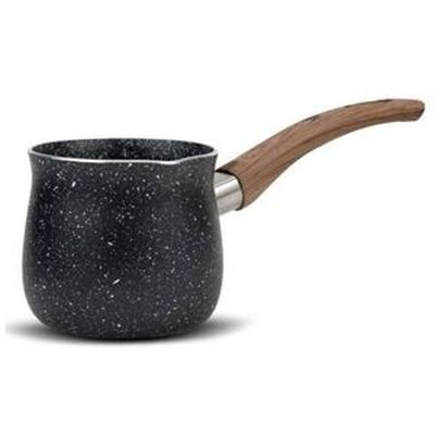 Džezva je vyrobena z vysoce kvalitního hliníku s odolným pětivrstvým granitovým nepřilnavým povrchem, díky kterému se káva nepřipaluje a nádobí se snadno čistí. Rukojeť je ergonomická a je potažena materiálem, který imituje dřevo, takže se příjemně drží a zůstává chladná i při vysokých teplotách. Díky praktické hubici naléváte kávu bez rozlévání a s maximální precizností.