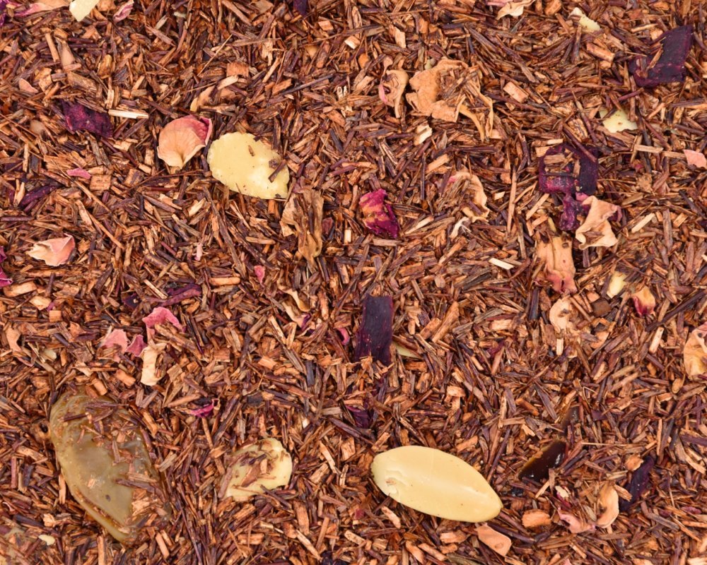 Složení: rooibos, MANDLE 7% (alergen - skořápkový plod), pomerančová kůra, kousky jablek, hroznové víno, datle, květ růže, aroma.