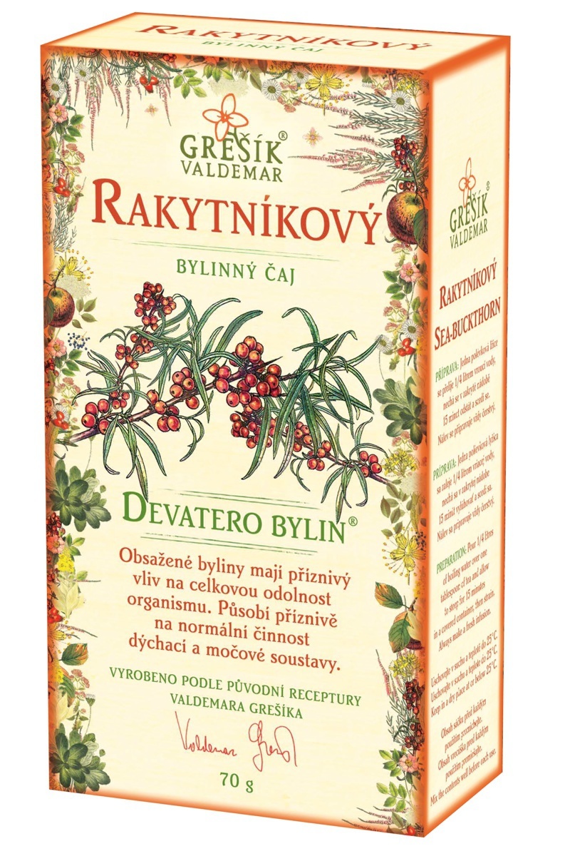 Složení: rakytník plod 60 %, vřes nať, šípek, jablka, bez černý květ, divizna květ, lípa květ, dobromysl nať, sedmikráska květ