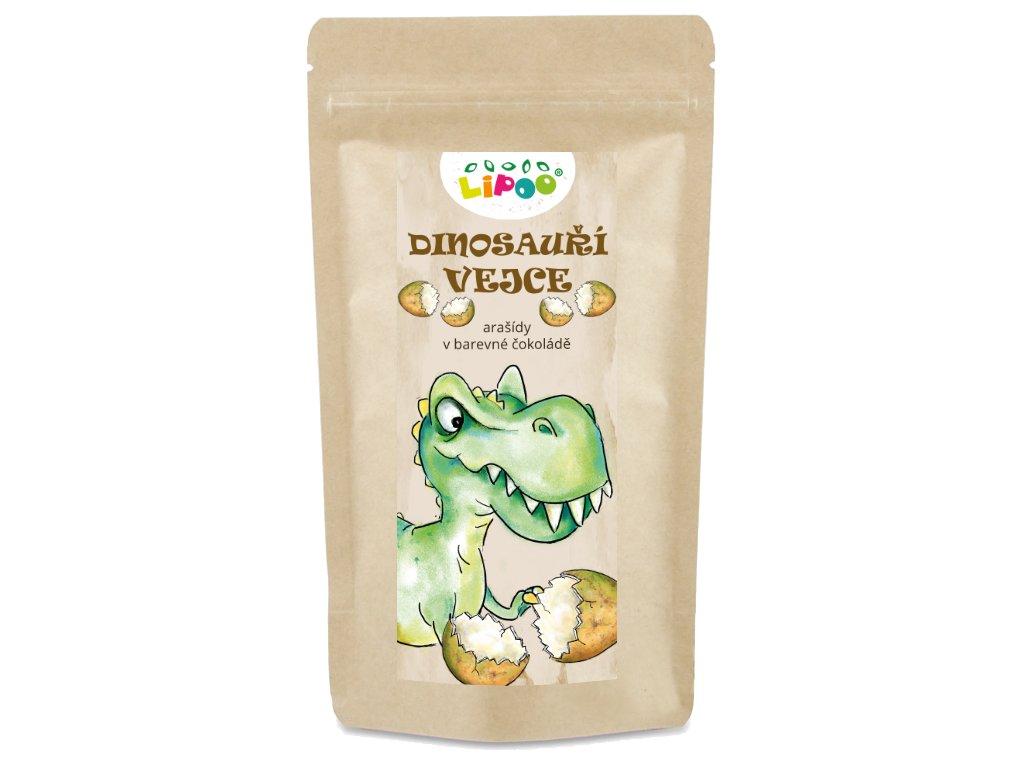 V barevné čokoládě namočená dinosauří vajíčka (arašídy) aka dinosauří lentilky je netradiční, ale velmi rafinovaný způsob, jak v dětech probudit lásku k luštěninám.
