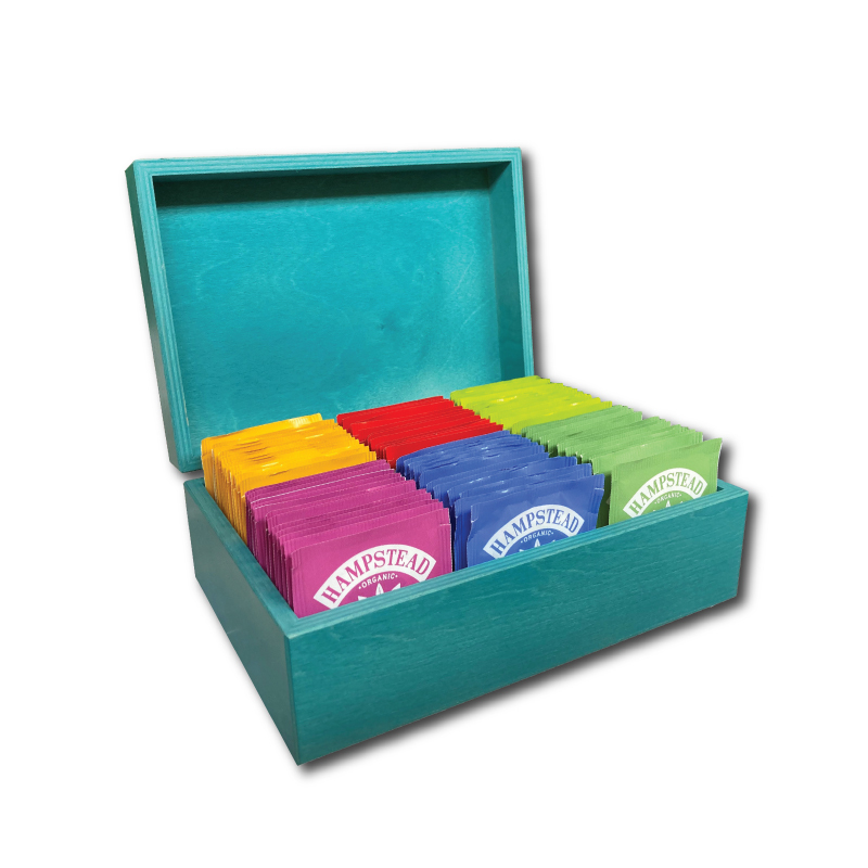 Hampstead Tea luxusní petrolejová dřevěná kazeta mix sáčkových BIO čajů 78ks - 6 druhů**