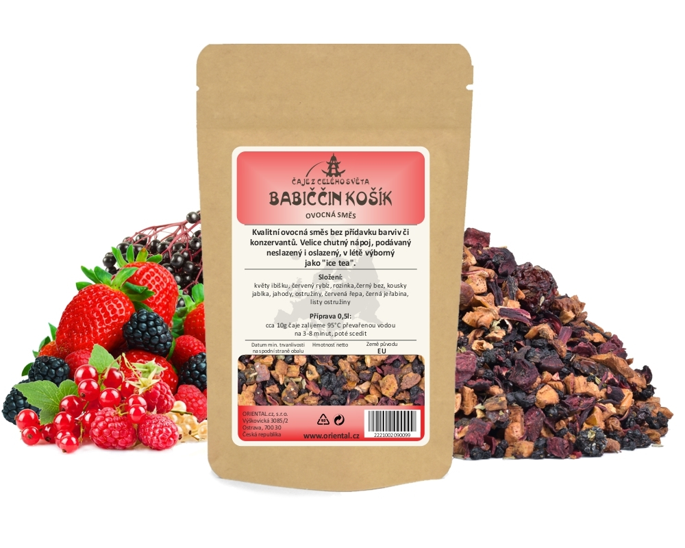 Zástupce oblíbených ovocných čajů. Výborný pro děti, když nechceme kofein, i jako osvěžení. Kvalitní ovocná směs bez přídavku barviv či konzervantů. Velice chutný nápoj, podávaný neslazený i oslazený, v létě výborný jako ice tea.