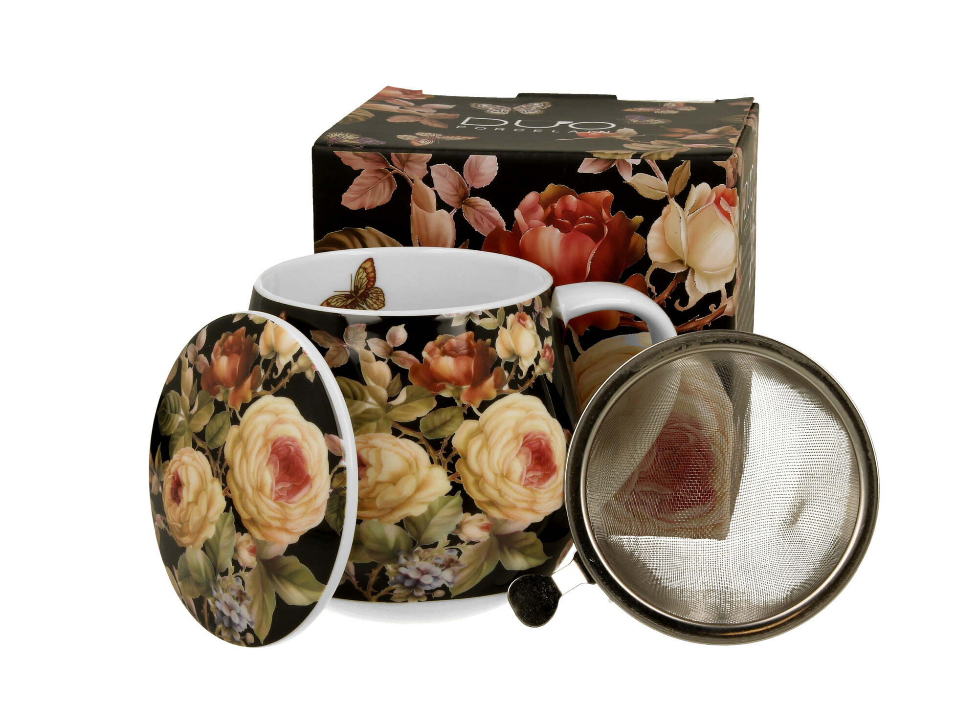 Kubek baryłka z zaparzaczem WARDA wchodzący w skład serii Flower Classic, wykonany z porcelany New Bone China, charakteryzującej się elegancką i naturalną kremowo - białą barwą z delikatnym połyskiem, a także wyjątkową wytrzymałością.