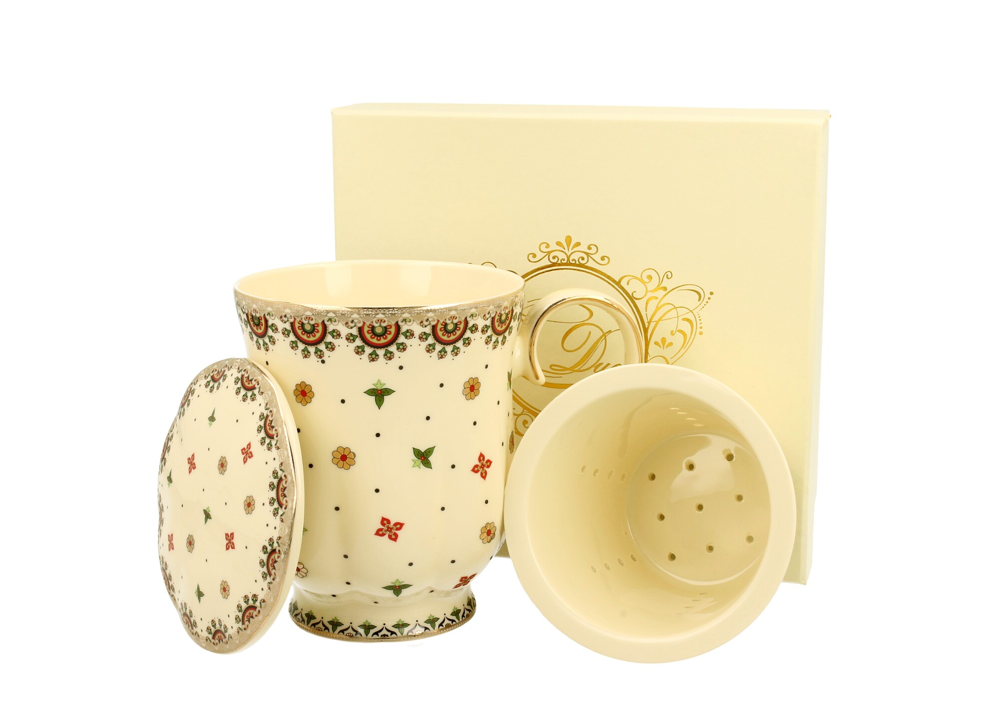 Kubek z zaparzaczem CASABLANCA wchodzący w skład serii ECRU Exclusive, wykonany z porcelany New Bone China w subtelnym kolorze ecru, która charakteryzuje się delikatnym połyskiem oraz wyjątkową wytrzymałością i trwałością, zachowując przy tym lekkość i finezję.