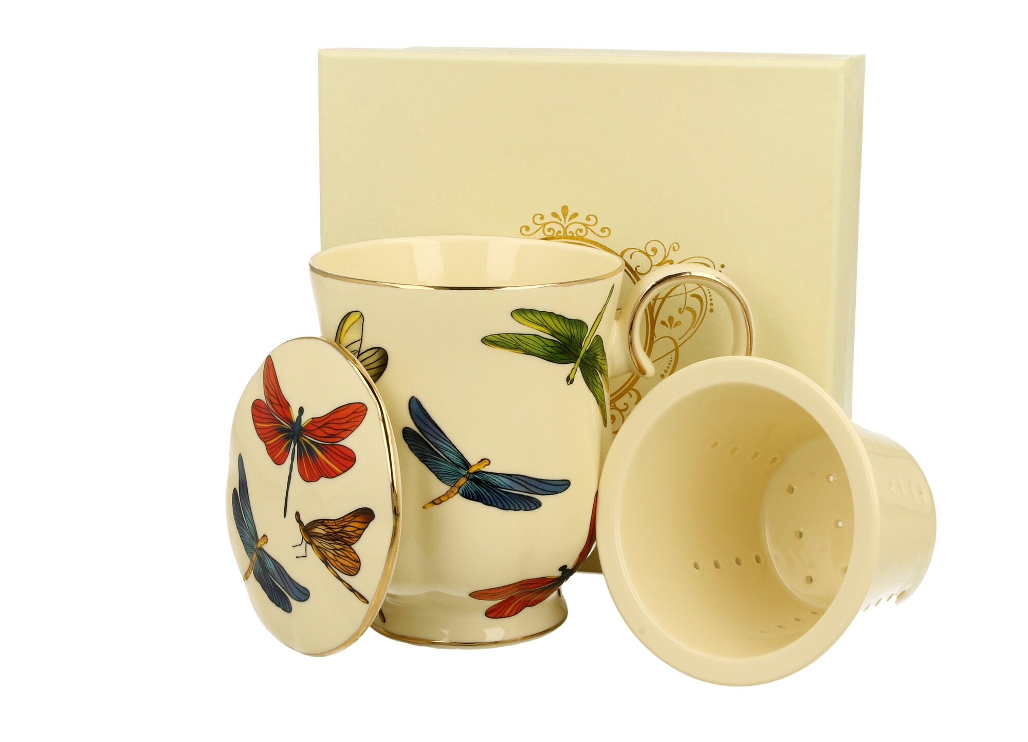 Linia wykonana z najwyższej jakości porcelany w kolorze ecru wykończonej złotymi zdobieniami oraz motywem kolorowych, eterycznych ważek. Soczyste kolory doskonale harmonizują ze śmietankową barwą porcelany.