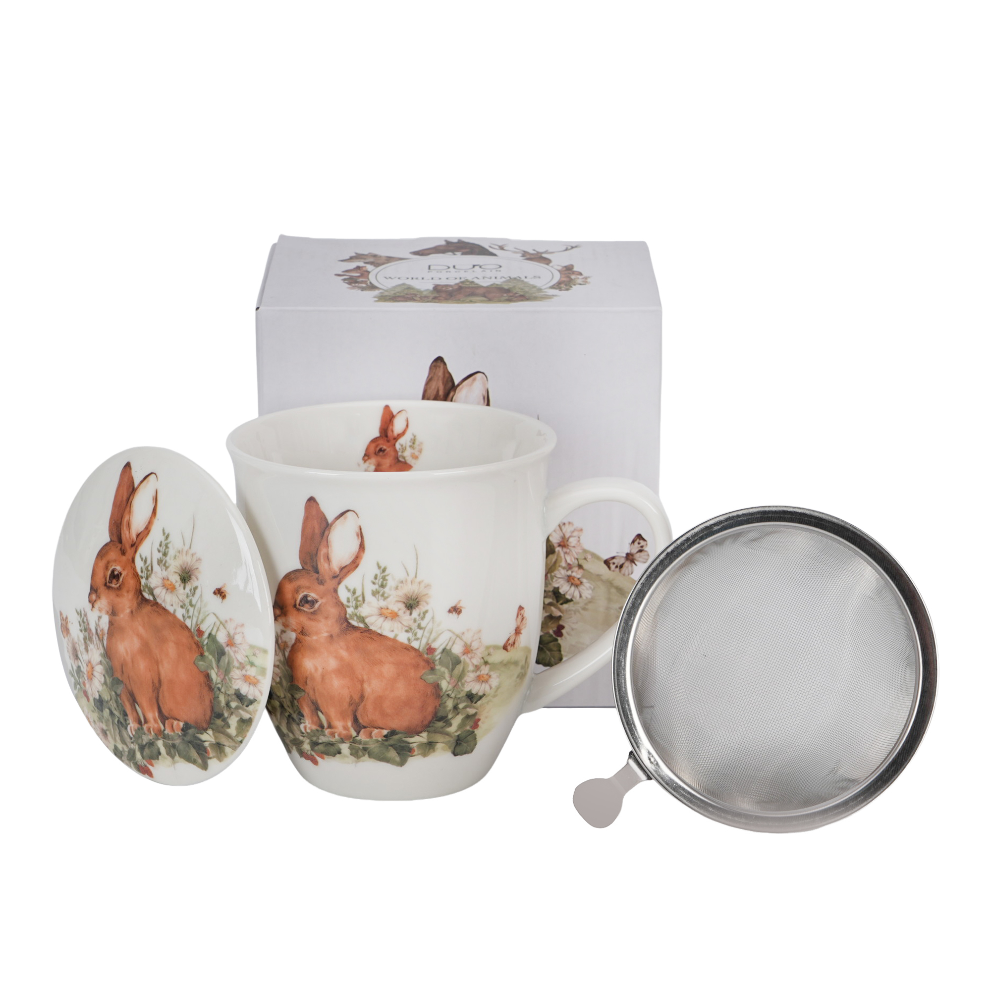 Kubek z zaparzaczem Świat Zwierząt ZAJĄC wchodzący w skład serii Animals, wykonany z porcelany New Bone China, charakteryzującej się naturalnym kremowo-białym kolorem z delikatnym połyskiem oraz wyjątkową wytrzymałością i trwałością, zachowując lekkość i finezję.