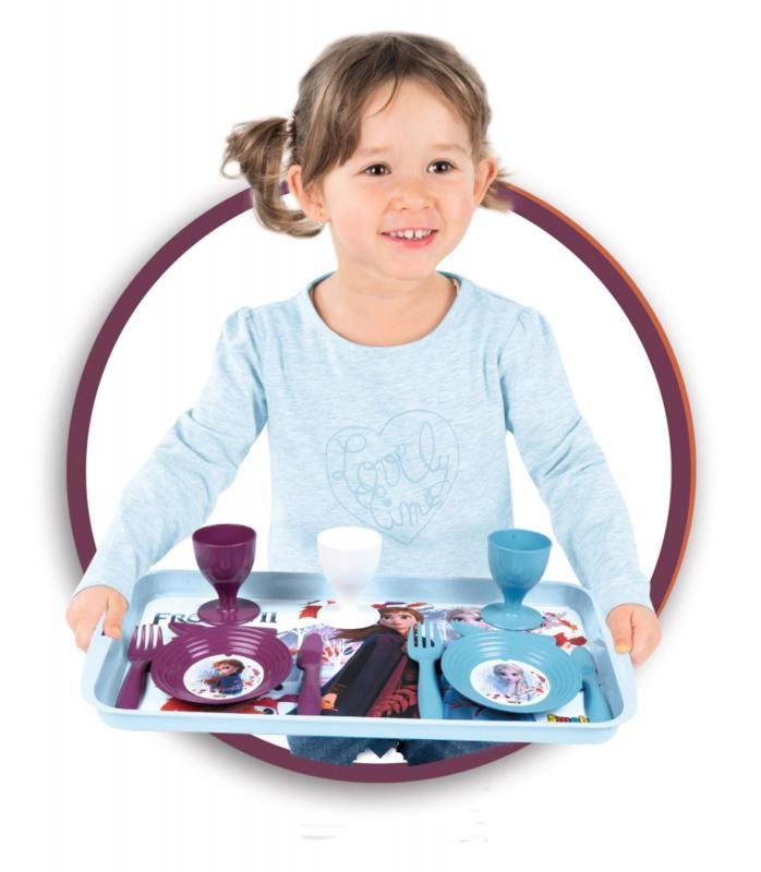 Sada čajového servisu s motivem princezen z filmu Ledové království 2. Sada obsahuje 4 talířky, 4 poháry, 4 lžičky, 4 vidličky, 4 nože a servírovací tác. Rozměry tácu: 40 x 7,5 x 21 cm.