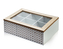 Pudełko SADIE marki MONDEX since 1986 na herbatę z 6 przegródkami z kratką wiedeńską. Wartościowe chwile wymagają odpowiedniej oprawy i nic nie podkreśla ich tak, jak ulubiona herbata serwowana w elegancki sposób. Przedstawiamy pudełko na herbatę z 6 przegródkami. Niezastąpiony element każdej kuchni lub salonu dla miłośników tego aromatycznego napoju. Wygodne przegródki pozwalają na schludne przechowanie różnych rodzajów herbaty.Dzięki temu łatwo utrzymasz porządek i szybko znajdziesz ulubiony smak. Design: Klasyczna elegancja drewnianego wykończenia sprawi, że pudełko stanie sięnie tylko praktycznym, ale i dekoracyjnym elementem. Pasuje do każdego wnętrza dodając mu charakteru. Funkcjonalność: Przejrzysta pokrywa pozwala na szybki wgląd do środka, co ułatwia wybór odpowiedniej herbaty, bez konieczności otwierania pudełka. Wytrzymałość: Wykonane z solidnych materiałów, gwarantuje stabilność i długowieczność, chroniąc jednocześnie Twoje herbaty przed wilgocią i zanieczyszczeniami. Wszechstronność: Możliwość przechowywania nie tylko herbat, ale również innych drobnych przedmiotów, sprawia, że pudełko jest wielofunkcyjne.wymiary:24x17xh8cm waga: 680g/742g z opakaowaniem zapakowane jednostkowo w brązowy box: 25x18xh9cm przecierać wilgotną szmatką przegródka: 7,5x7,5cm