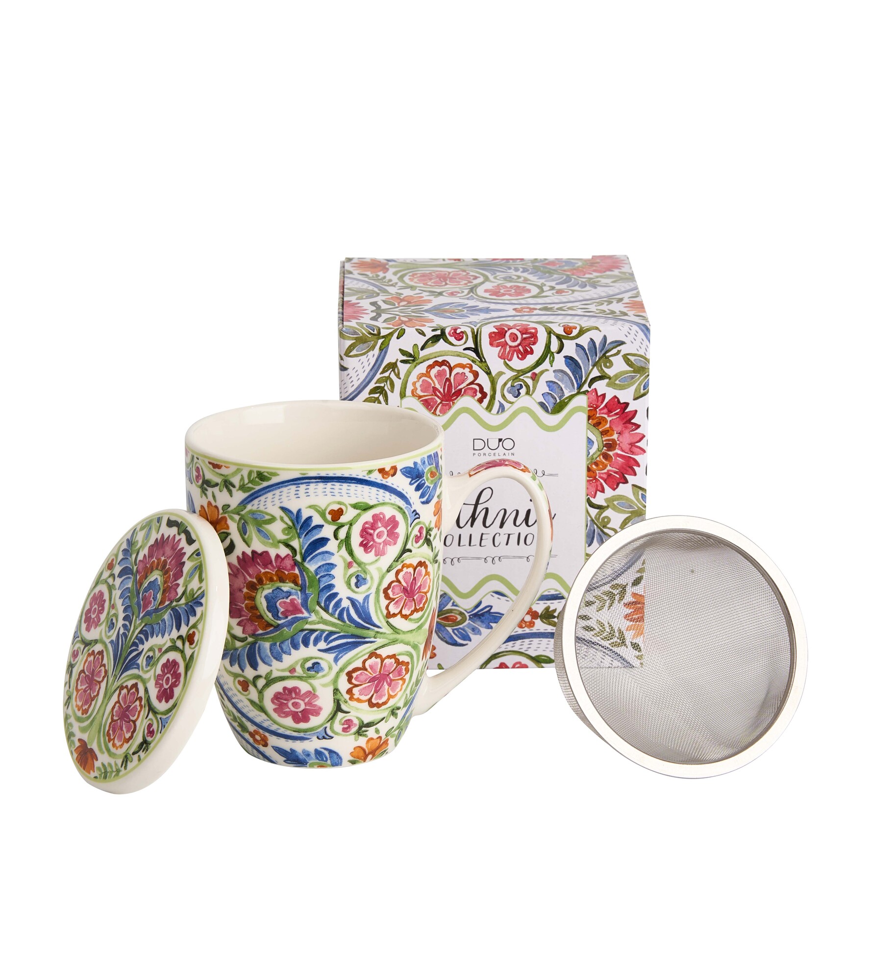 Kubek z zaparzaczem MAYFLOWER wchodzący w skład linii ETHNIC, wykonany z porcelany New Bone China, charakteryzującej się elegancką i naturalną kremowo - białą barwą z delikatnym połyskiem a także wyjątkową wytrzymałością przy zachowaniu lekkości i delikatności.