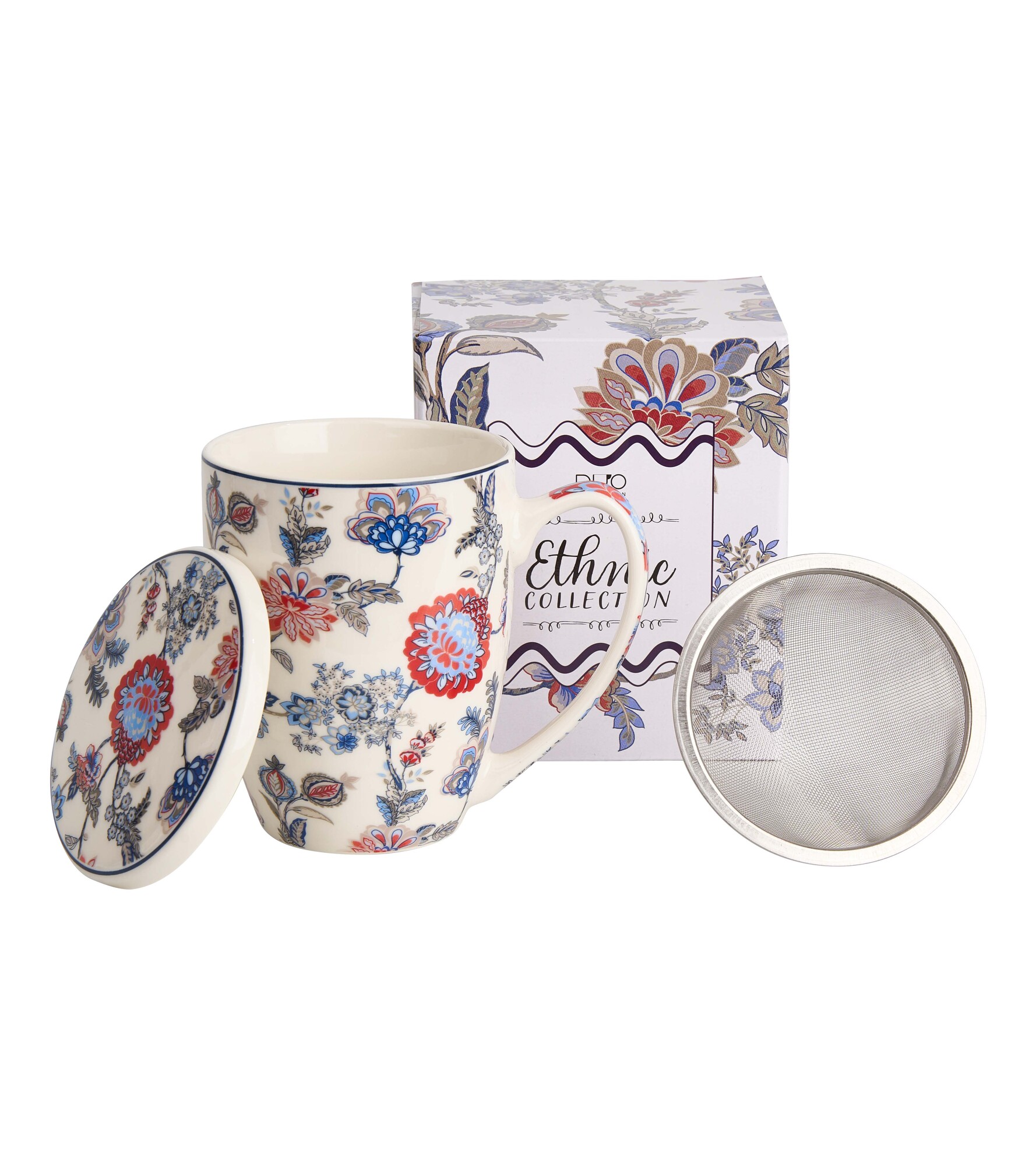 Kubek z zaparzaczem SAHAT WHITE wchodzący w skład linii ETHNIC, wykonany z porcelany New Bone China, charakteryzującej się elegancką i naturalną kremowo - białą barwą z delikatnym połyskiem a także wyjątkową wytrzymałością przy zachowaniu lekkości i delikatności.