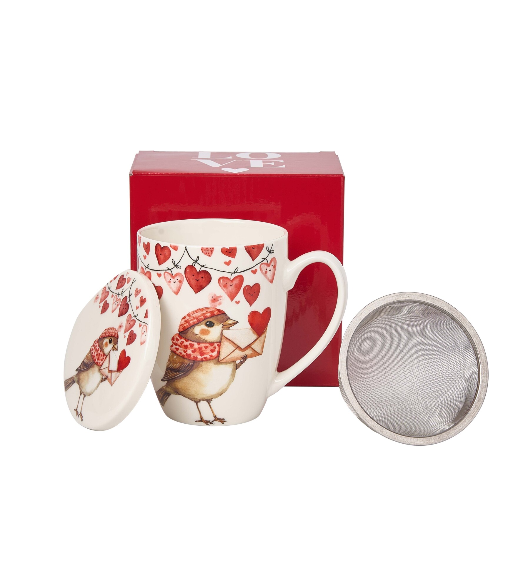 Kubek z zaparzaczem WRÓBEL wchodzący w skład linii SERCA, wykonany z porcelany New Bone China, charakteryzującej się elegancką i naturalną kremowo - białą barwą z delikatnym połyskiem a także wyjątkową wytrzymałością przy zachowaniu lekkości i delikatności.