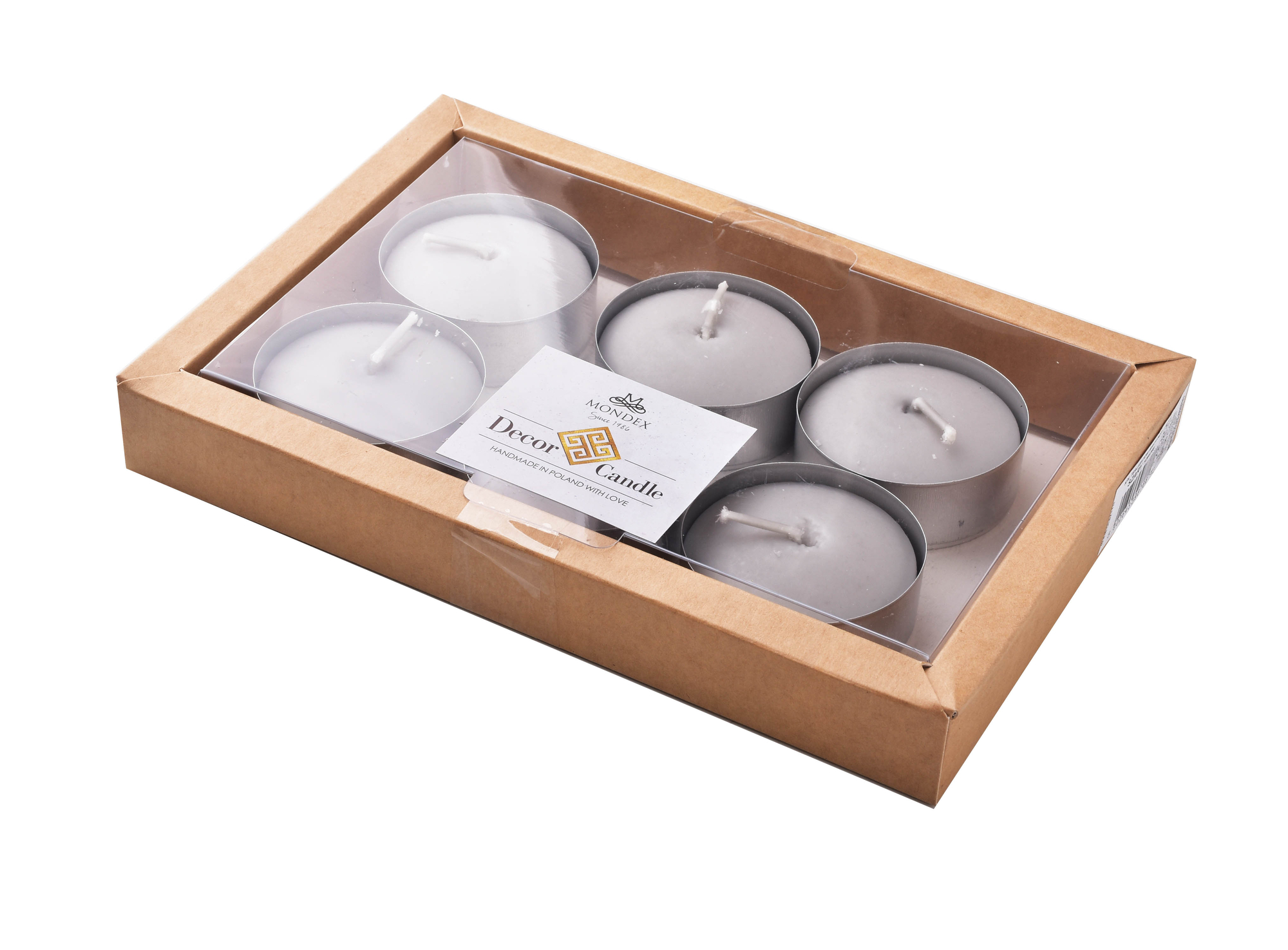 KOMPLET ŚWIEC TEALIGHT MAX 6 SZT SZARY