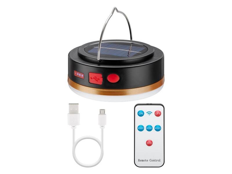 Tato LED solární kempingová lampa disponuje pěti světelnými režimy - od plného osvětlení přes poloviční jas až po stroboskopický efekt, červené světlo a SOS signál. Díky infračervenému dálkovému ovladači s dosahem až 5 metrů snadno přepnete mezi režimy a ovládáte intenzitu světla bez nutnosti přímého kontaktu se svítilnou.