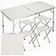 Kempingový skládací set se stolem a 4 židlemi pro každou příležitost. Skládací design zajistí snadné skladování a přepravu. Vše lze složit do podoby kufru s madlem. Nastavitelná výška stolu. Nízká hmotnost. Pevná konstrukce a zpracování. Snadno se čistí. Univerzální využití na piknik, zahradní...