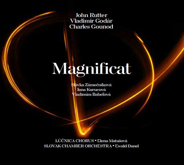 Anotácia: Magnificat alebo Chválospev Panny Márie je jeden z chválospevov, ktorý je uvedený v Evanjeliu sv. Lukáša (prvá kapitola verše 46 až 55). Svoj názov má zo začiatočných slov v latinčine Magnificat anima mea - Velebí moja duša. Pre tento album boli vybrané tri diela, ktoré boli skomponované v rôznych obdobiach a ktoré používajú rozdielne, často veľmi kontrastné vyjadrovacie prostriedky. John Rutter je popredný významný anglický skladateľ, dirigent, aranžér a pedagóg, ktorého dielo je spojené najmä so zborovou a vokálno-inštrumentálnou duchovnou hudbou. Jeho Magnificat pre sólový soprán, miešaný zbor a komorný orchester mal premiéru 26. 5. 1990 v Carnegie Hall v New Yorku. Druhým dielom je Magnificat pre ženský hlas, zbor, sláčikový orchester a harfu z roku 2003 významného slovenského autora Vladimíra Godára a tretím je Magnificat pre sólový soprán a organ od francúzskeho romantického skladateľa Charlesa Gounoda. K spolupráci na týchto nahrávkach podarilo zabezpečiť vynikajúce operné sólistky, slovenské rodáčky pôsobiace na popredných svetových scénach - sopranistku Slávku Zámečníkovú (Rutter), mezzosopranistku Janu Kurucovú (Godár), ako aj členku a sólistku Speváckeho zboru Lúčnica Vladimíru Babeľovú (Gounod). Na nahrávkach participovali členovia Speváckeho zboru Lúčnica pod vedením zbormajsterky a dirigentky Eleny Matušovej, hudobníci Slovenského komorného orchestra, doplnení o sólových hráčov orchestra Slovenskej filharmónie pod vedením dirigenta Ewalda Danela.Tracklist: John Rutter (*1945): MAGNIFICAT pre sólo soprán, miešaný zbor a komorný orchester, 1. Magnificat anima mea, 2. Of a Rose, a lovely Rose, 3. Quia fecit mihi magna, 4. Et misericordia, 5. Fecit potentiam, 6. Esurientes, , 7. Gloria Patri, Vladimír Godár (*1956): 8. MAGNIFICAT, pre ženský hlas, zbor, sláčikový orchester a harfu, Charles Gounod (1818 - 1893): 9. MAGNIFICAT, pre sólo soprán, zbor a organ
