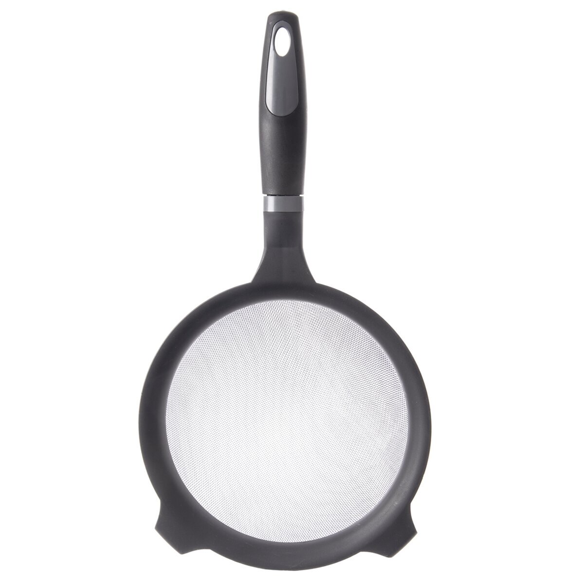 Kulatý cedník s robustním rámem a rukojetí usnadňuje prosévání a oddělování potravin. Zarážky na praktických úchytech ho bezpečně udrží na hrnci nebo míse. Možnost zavěšení. Materiál: nerez (síťka), plast PP. Rozměry: pr. 19 cm, d. 36 cm. Lze mýt v myčce. číst celé