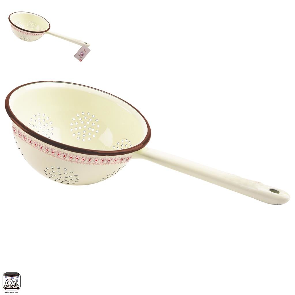 - Přesné rozměry: průměr cedníku 18 cm, délka 39 cm.