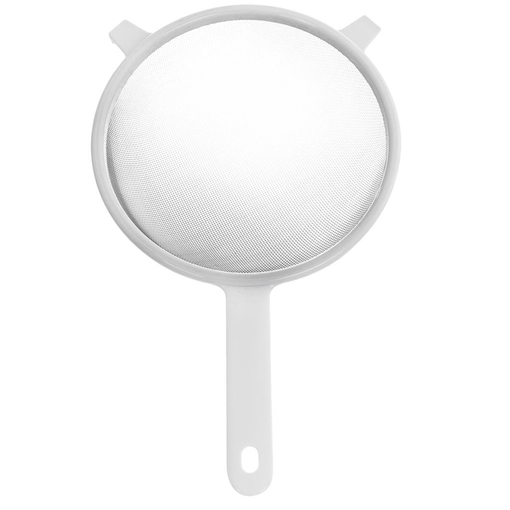 Jeho průměr je 20 cm a má nerezovou síťku. Díky přední zarážce jej lze snadno uchytit za okraj hrnce. Zároveň má delší držadlo, které nejenže usnadňuje manipulaci s ním, ale také umožňuje jeho pověšení na zeď.