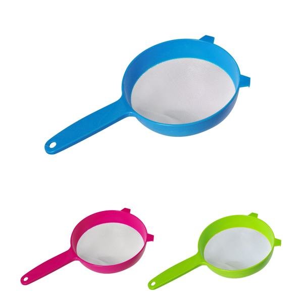 Plastový cedník, má dlouhou rukojeť, která zajišťuje spolehlivé uchycení. Plastový háček na jeho okraji slouží pro opření cedníku např. o okraj hrnce a zajištění tak stabilnější polohy. Háček umožňuje zavěšení cedníku. Rozměry cedníčku - 11,5 x 20 cm.