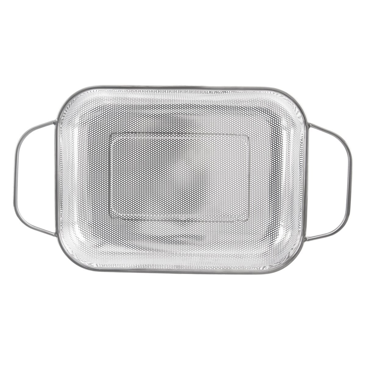 Nerezový cedník-košík se dvěma uchy pomůže při cezení těstovin, oplachování a okapávání ovoce a zeleniny, okapávání omastku při pečení masa nebo při zabijačkách, pro odložení knedlíků na okapání a zchladnutí... Skvěle se hodí také při grilování masa, klobás, zeleniny v troubě i na grilu. Nevkládejte ho však do přímého ohně, umístěte nad žár. Použijte kuchyňské chňapky, které ochrání vaše ruce před popálením. Praktická jsou 2 ucha pro přenášení a manipulaci a také nožičky na dně košíku. Materiál: nerezová ocel. Rozměry: samotný košík 33,5x24,5x7 cm, rozměry s uchy 41,5x24,5x10 cm. Lze mýt v myčce.