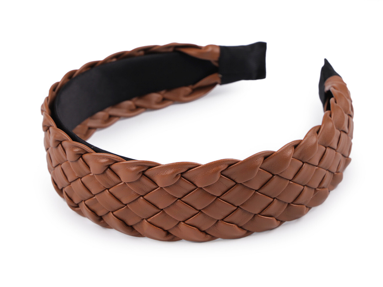 Široká čelenka do vlasů koženková - 1 ks - 2 hnědá koňak
