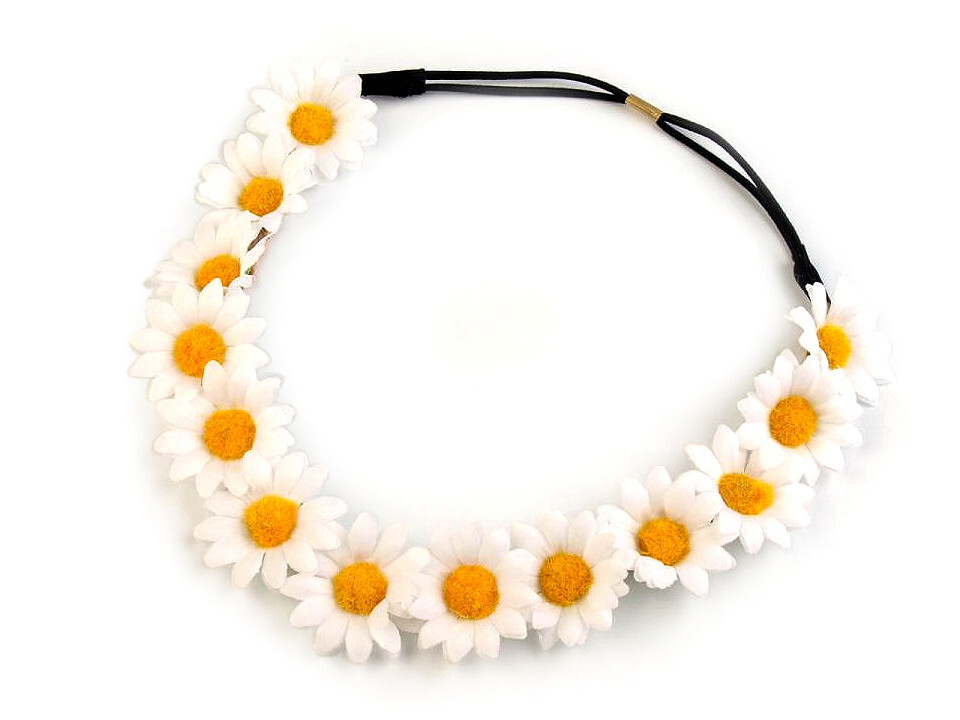 Pružná čelenka do vlasů s kopretinami - 1 ks - bílá