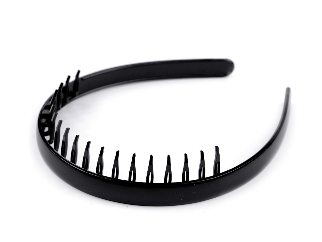 Plastová čelenka do vlasů s hřebínkem - 1 ks - černá