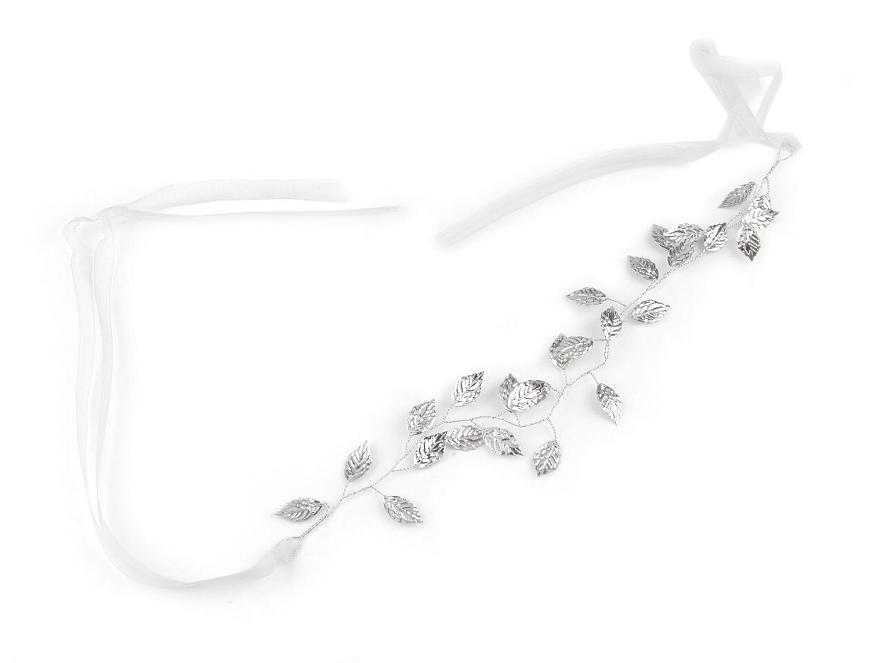 Ozdoba do vlasů s listy uvazovací hand made - 1 ks - 1 stříbrná
