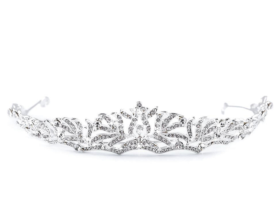 Štrasová korunka neboli tiára je ozdobená skleněnými broušenými kamínky. Díky vysokého třpytu vypadá velmi luxusně.