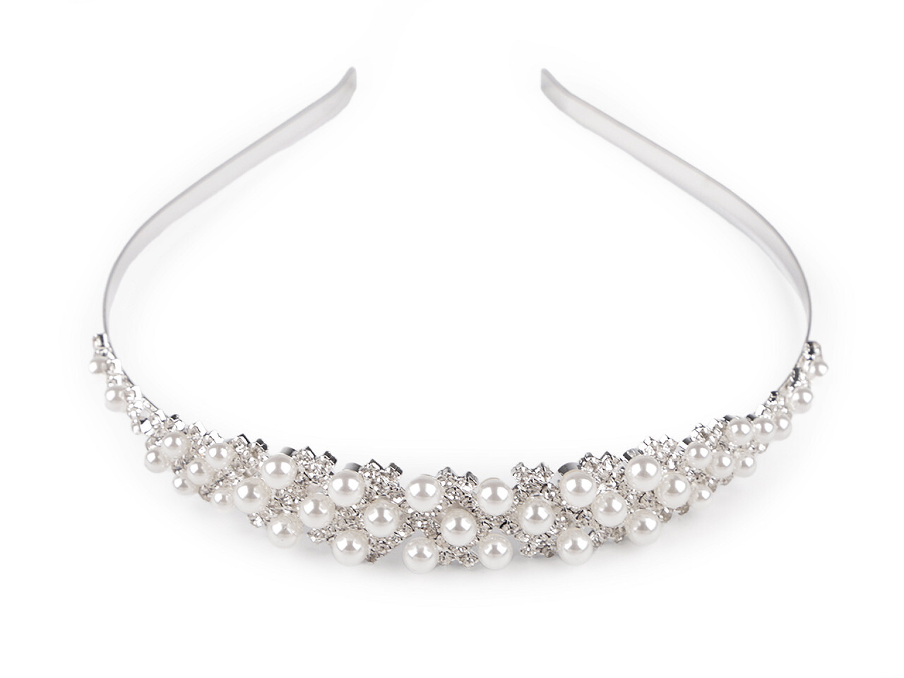 Štrasová čelenka do vlasů s perlami - 1 ks - crystal