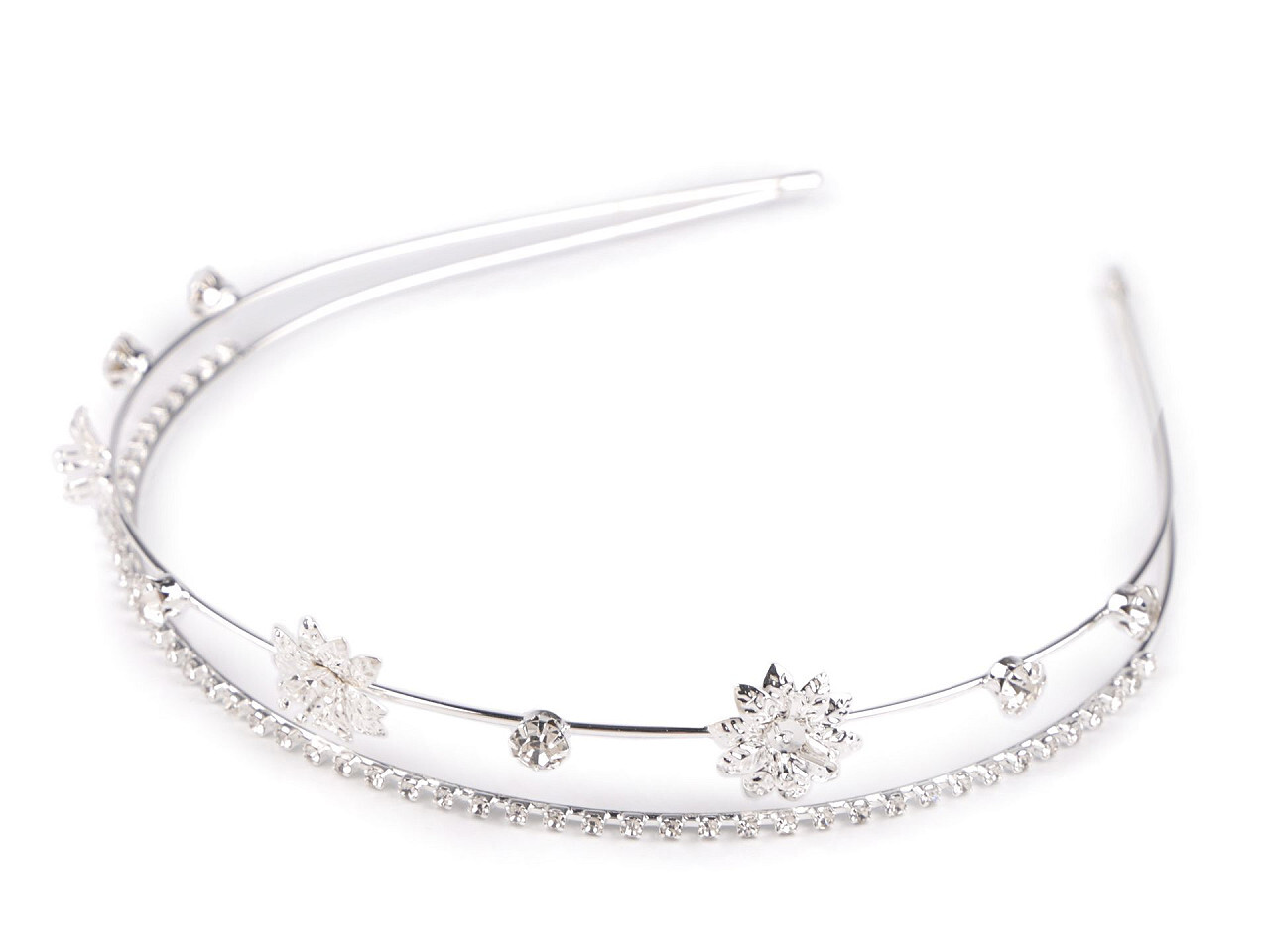 Štrasová čelenka do vlasů dvojitá - 1 ks - 1 stříbrná