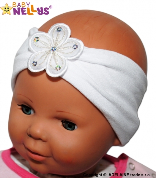Čelenka Baby Nellys ® s květinkou - bílá, 80/92; 80-92 (12-24m)