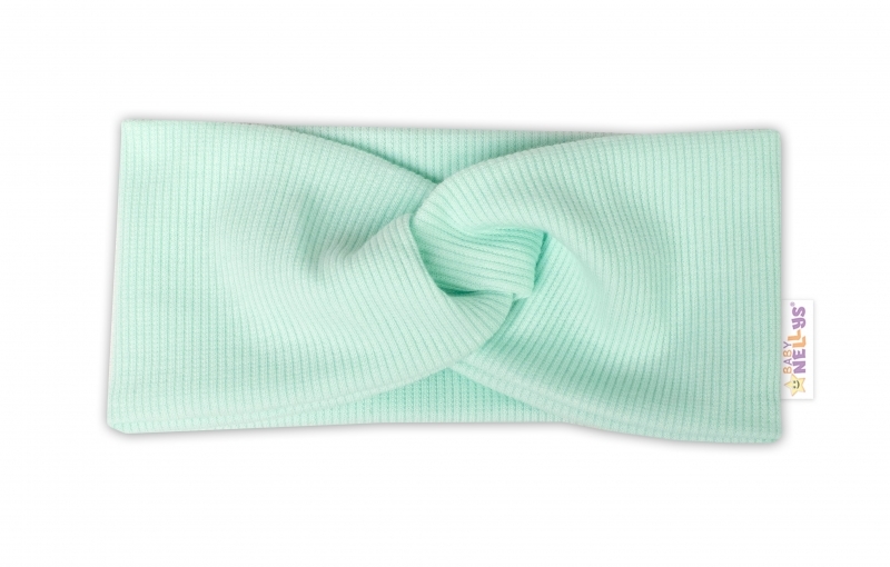 Baby Nellys Hand Made Dvouvrstvá žebrovaná čelenka, mátová, 68/74; 68/74 (6-9m)