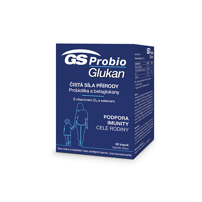GS Probio Glukan je doplněk stravy s čistou silou přírody pro posílení přirozené imunity celé rodiny. Jedinečná synergická kombinace probiotik, kvasničného betaglukanu a vitamínu D3 se selenem je vhodná pro děti i dospělé. Přípravek GS Probio Glukan můžete užívat celoročně, ale hlavně pak především v období zvýšené zátěže během podzimu, zimy i jara.