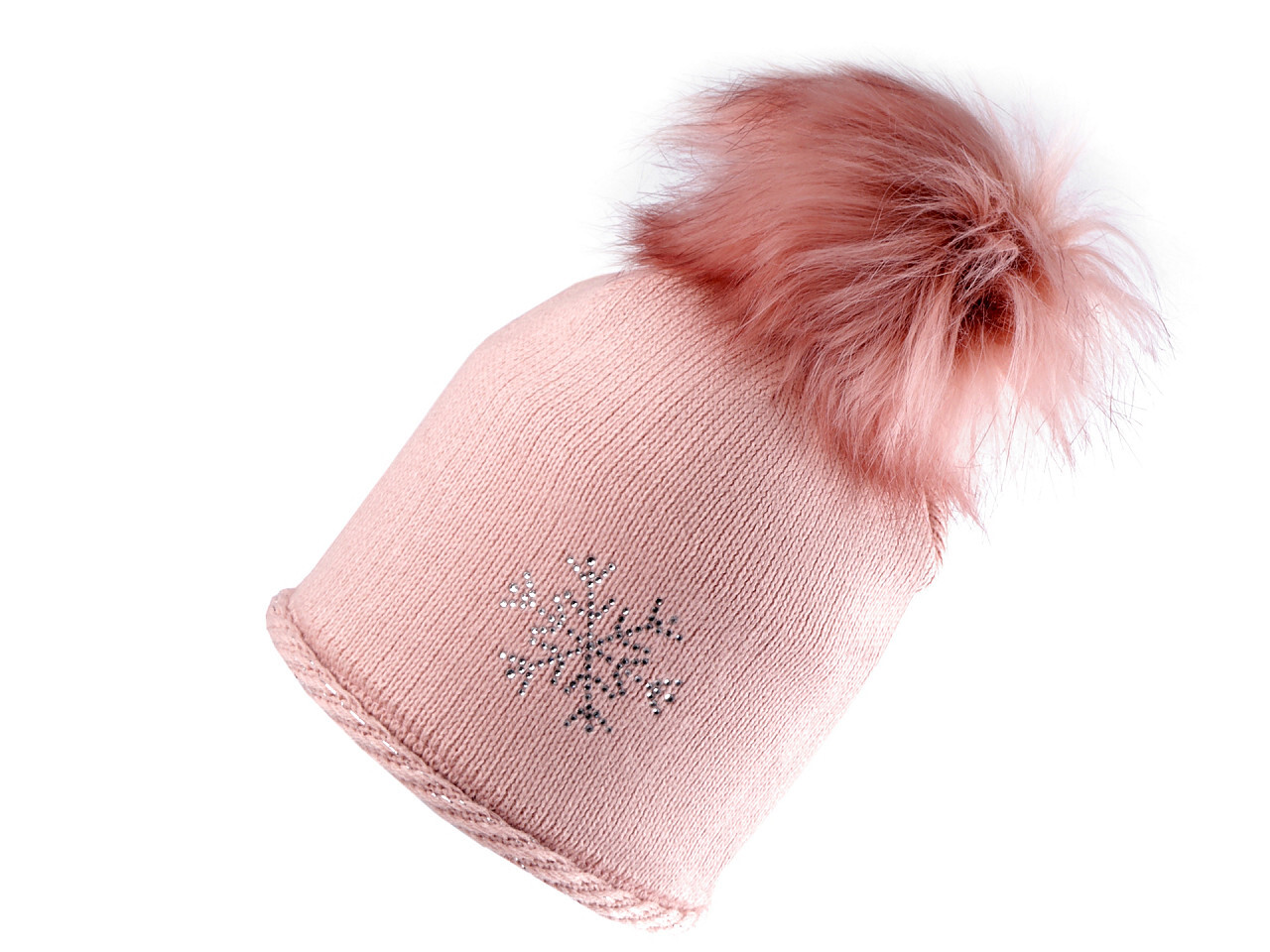 Pletená čepice s třpytivou vločkou z kamínků vás bude hřát celou zimu. Na první pohled zaujme velkou chlupatou bambulí. Uvnitř je čepice podšitá pásem teplého fleecu. Okraj čepice se ozdobně roluje, je protkán třpytivými lurexovými vlákny. Chlupatá bambule imituje pravou kožešinu.