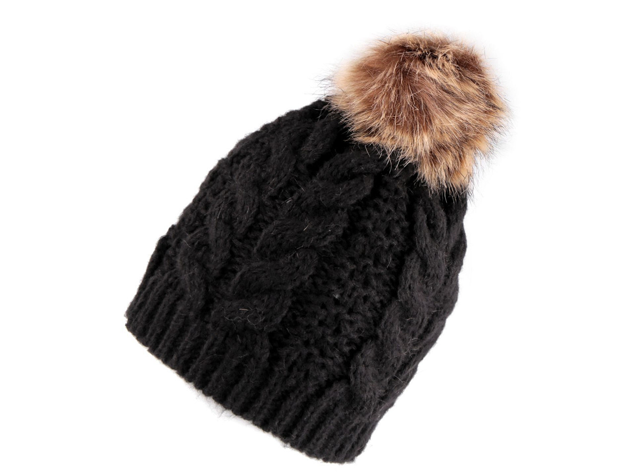 Dámská / dívčí zimní čepice s bambulí - 1 ks - 3 černá