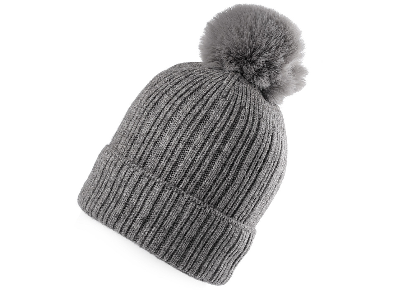 Dámská / dívčí zimní čepice s bambulí Emi Ross - 1 ks - 5 šedá